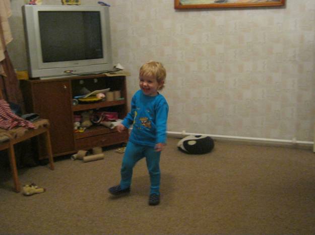 Бегала по коридору с мальчиком Назаром (2.5 г). Он играл с Полиниными человечками, а когда ей особенно не нравилось, она кричала: Ма! Низя! (Мальчик, нельзя!)