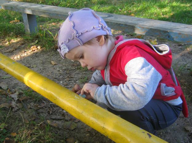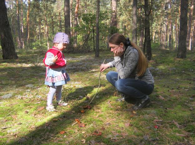 Грибы тоже собирали. Жалко дождей не было и грибы или несъедобные, или старые или ненужные. Полина добросовестно все найденные грибы повыковыривала палочкой)