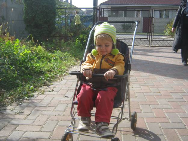 Уже пошли домой, дошли до двери, как она потребовала покататься в колясочке.