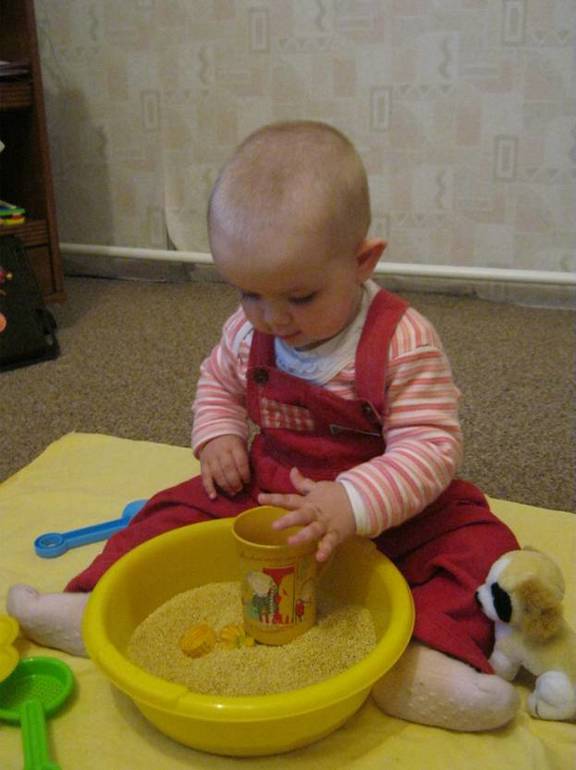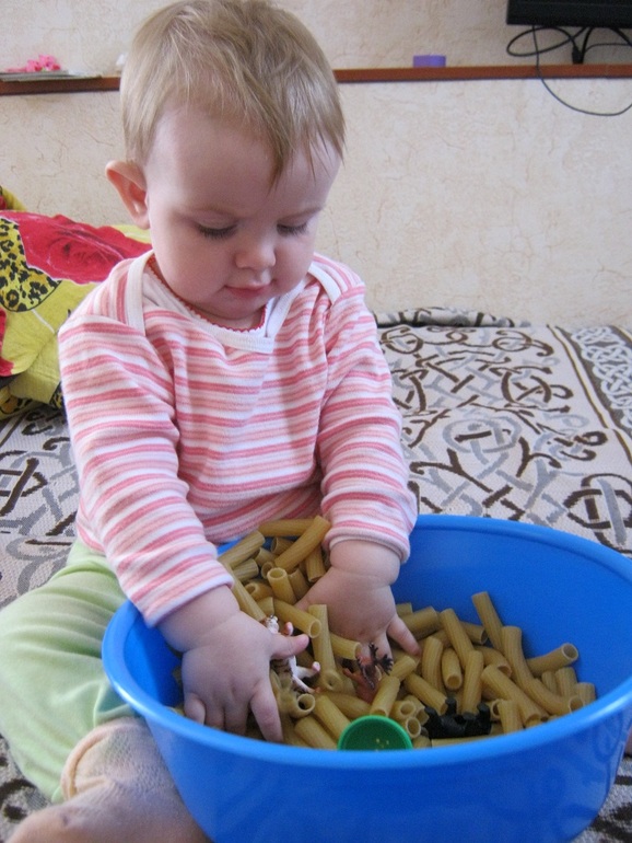 Главным образом об осязании и о разных сенсорных коробочках, которые я предлагаю для игр дочке.