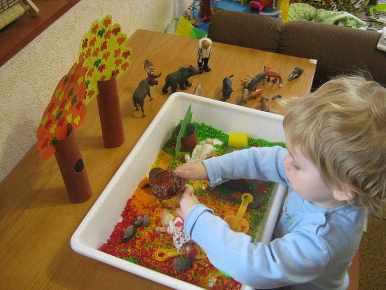 Чуть не забыла, ведь у нас была замечательная сенсорная коробочка Осенний лес!
