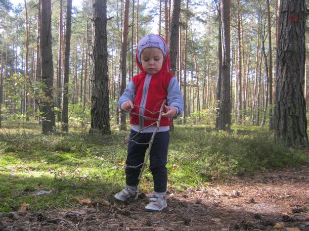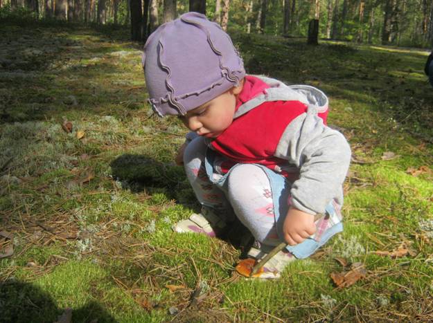 Полина полюбила палки, пеньки и выковыривать грибы)