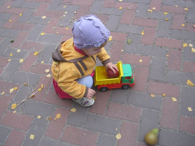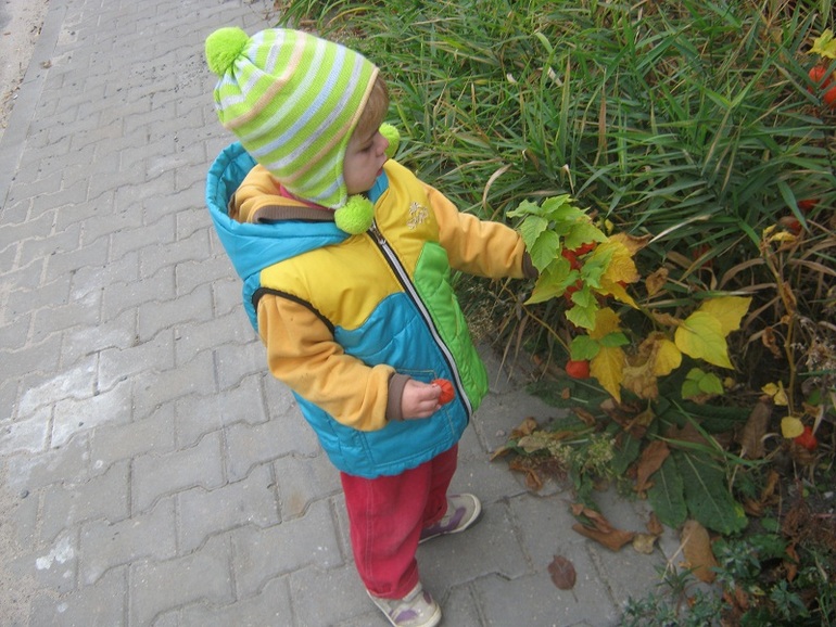 И конечно много гуляли, я ей рассказывала, что осень пришла, листики стали желтые, скоро будет холодно и все в таком осеннем духе.
