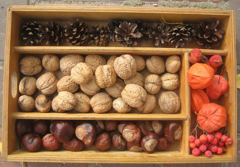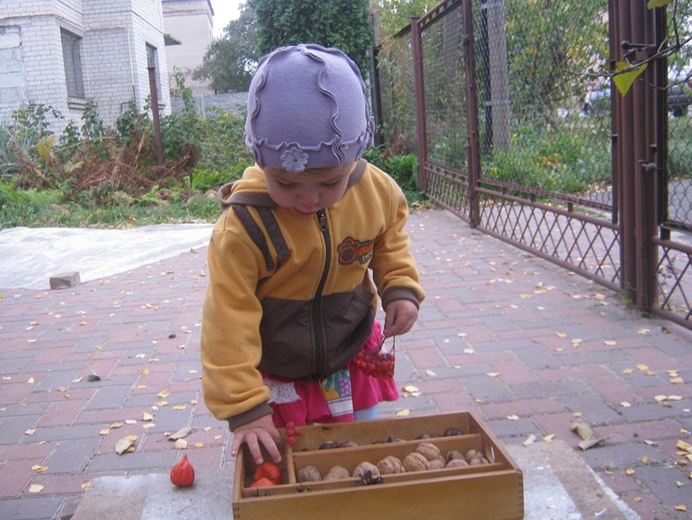 Собирательством мой ребенок не увлекся, к сожалению. Зато мама давала и давала планы: то каштаны пакетами домой носила, то шишки в лесу собирала. Полина удовлетворилась тем, что собрала пару каштанчиков и пару орехов. Зато очень помогала деду мыть их.