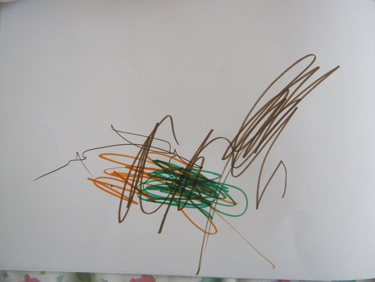 Но советам следую. Не подсказываю, не ограничиваю, молча сижу и наблюдаю. Иногда предлагаю заполнить пустое место, но не настаиваю. И уж никогда ее рукой не рисую. Иногда спрашиваю, что она нарисовала, но не говорю ей, что мне там видится. Она сейчас в таком возрасте, что и сама уже комментирует)