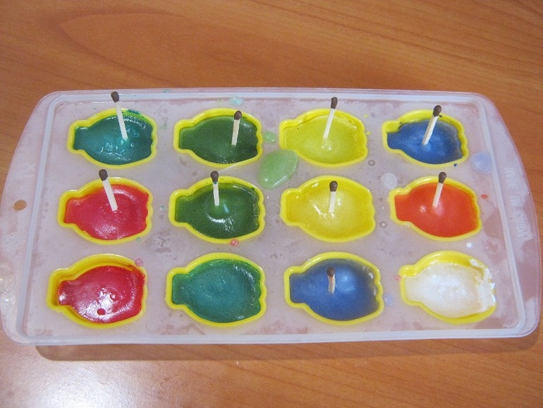 И еще льдом любит рисовать. Вот с декабря у нас лежит в морозильнике форма, сама просит, мы достанем, порисуем и снова в морозильник.