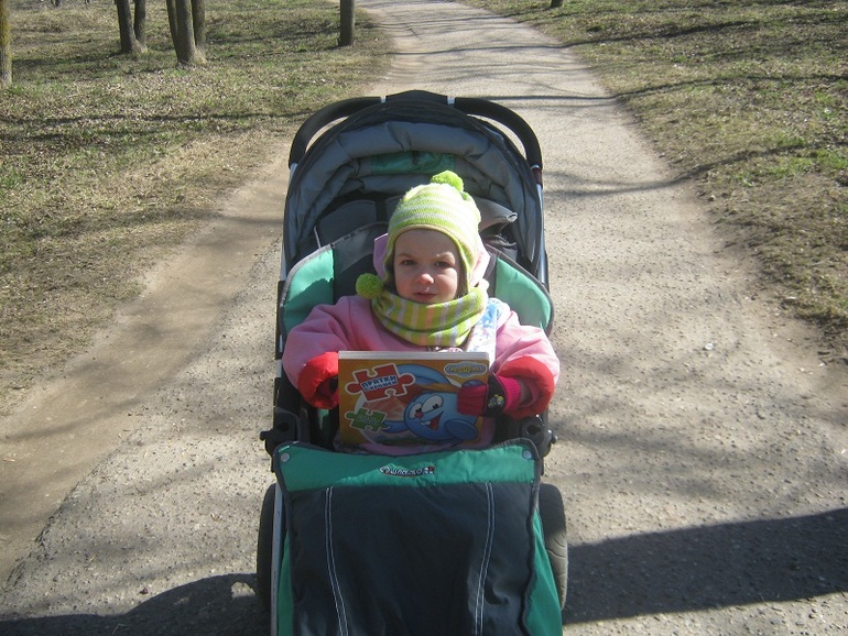 Дома мы читали книжки, потом она уснула. Но вот когда проснулась, то была опять приболевшей. И я ее буквально часа три с рук не спускала, то читали, то она на мне спала, то снова читали, то дремала. К вечеру вообще все прошло, она носилась с Антоном и верещала во всю силу)
