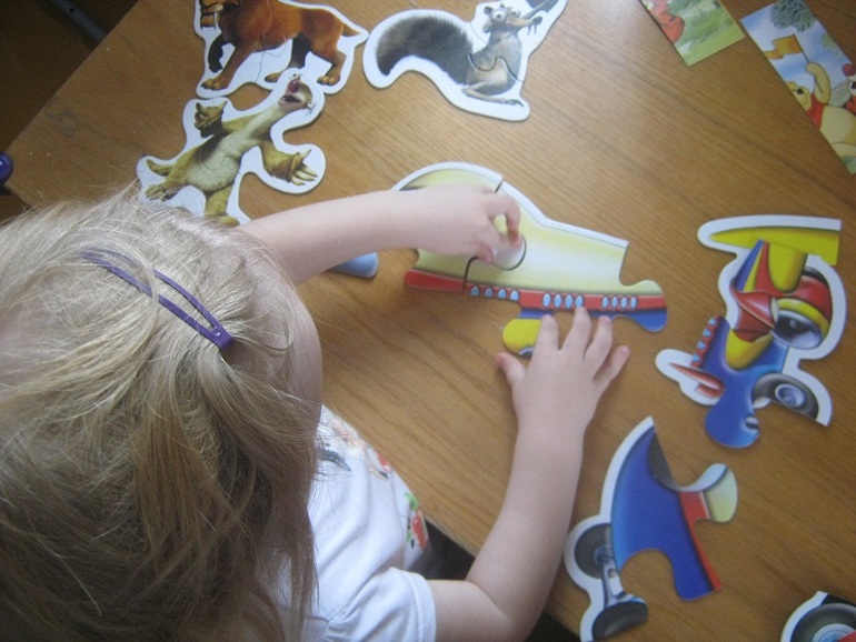 А еще у нас радость - Полина заинтересовалась складыванием пазлов! И складывает из 4-5-6-7 частей. Целый вечер складывала. Папа наверно устал их разваливать)