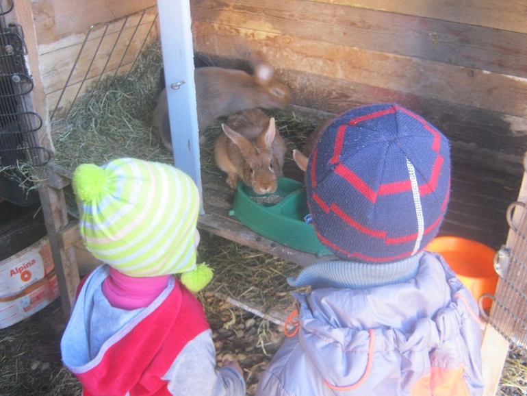 Но еще завернули к знакомой бабушке посмотреть кроликов. Полина никого не боится, погладила всех кроликов)