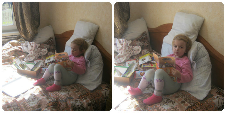К вечеру, когда нужно расстилать кровать, она завалена книжками: то, что мы читали утром, то, что на дневной сон, то, что вечером.