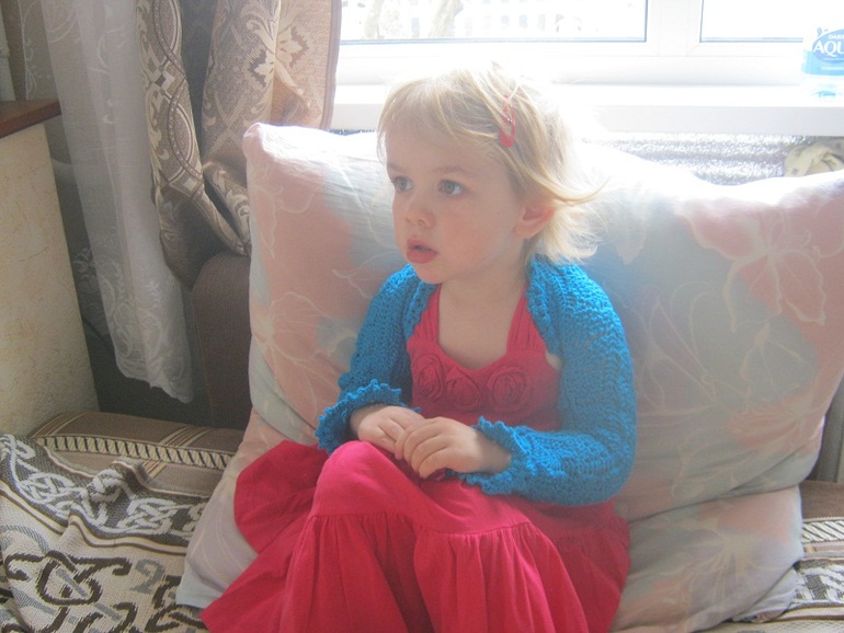 Моя принцесса утром) Болеро-то получилось красивое спереди, но мало уже.