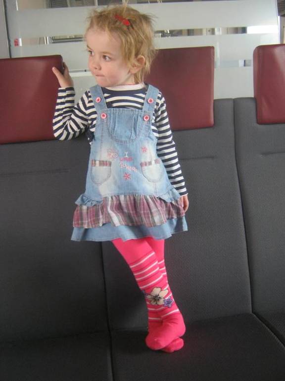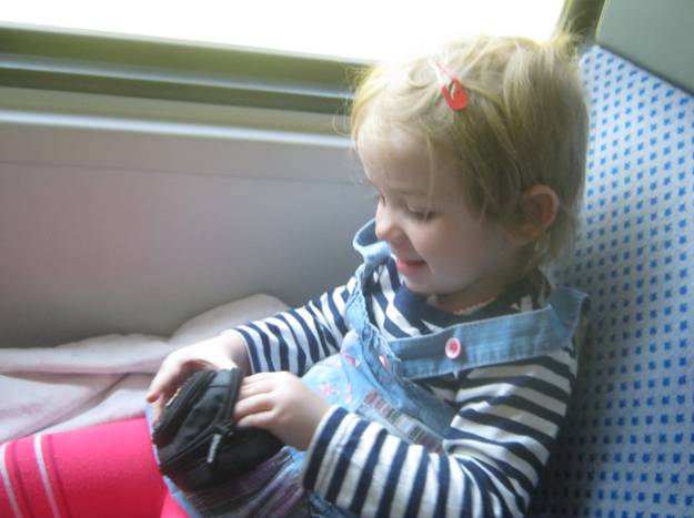 Мои беспокойства относительно того, как это я поеду САМА с ребенком в поезде, не оправдались. Я набрала торбу развлечений в дорогу, и приготовилась к променадам по вагону. Но все это не понадобилось. Сначала мы почитали книгу, потом больше часа занимались наклейками, потом киндером, смотрели в окошко и дважды прошлись в туалет (вот и все наши прогулки по вагону).