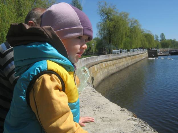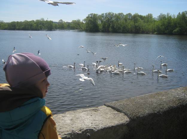 А потом пошли на Набережную и кормили лебедей, уток, чаек и голубей.