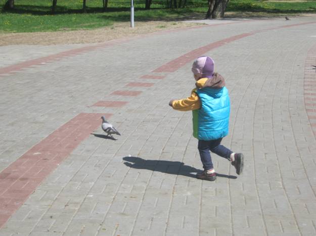 За голубями Полина бегала очень активно с криками: Хацю памаць гоюбя!