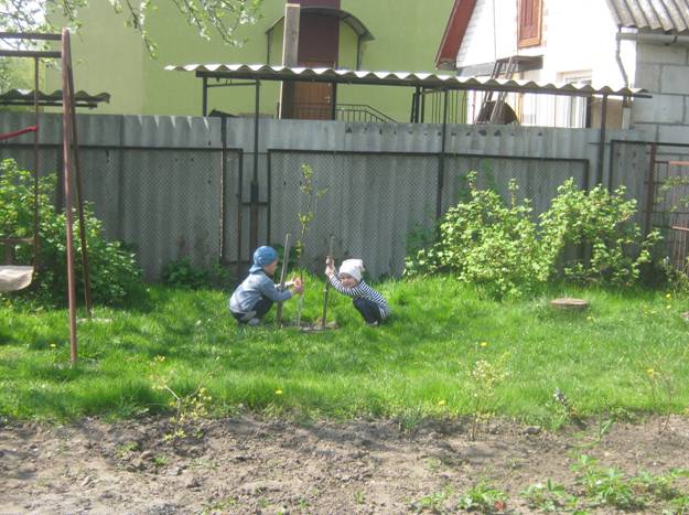 Погода теплая. Я даже в майке была иногда. Поля в легкой кофточке. Сходили в магазин, купили мороженое и съели его по пути домой. Копалась в песочнице и ходила вокруг дома.