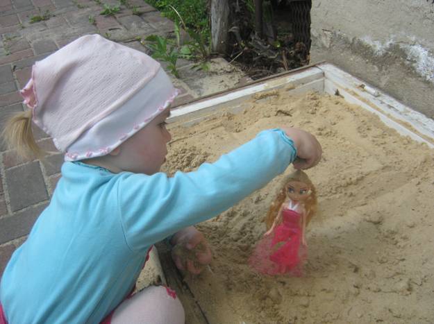 Я не знаю, как ваши девочки играют в куклы, но моя доча закапывает их в песок, а потом катает на машине)
