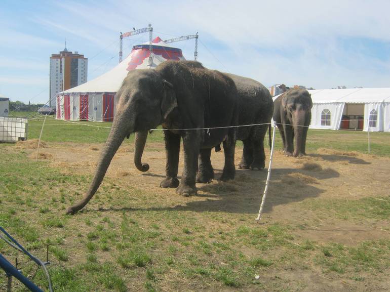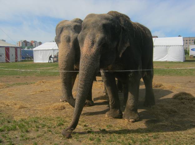 А все дело в том, что в Бресте Цирк ДЗIВА, а там слоны. Вот мы и подъехали к Цирку посмотреть слонов. Они гуляют за оградой, такие спокойные и большие.