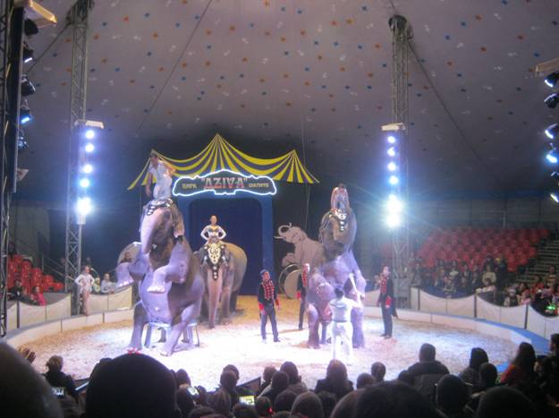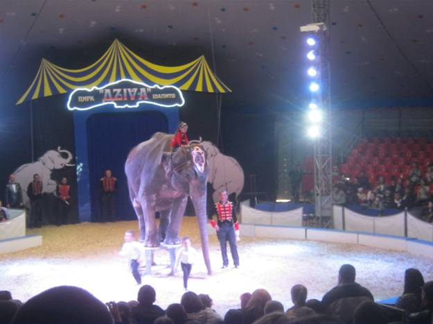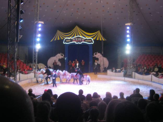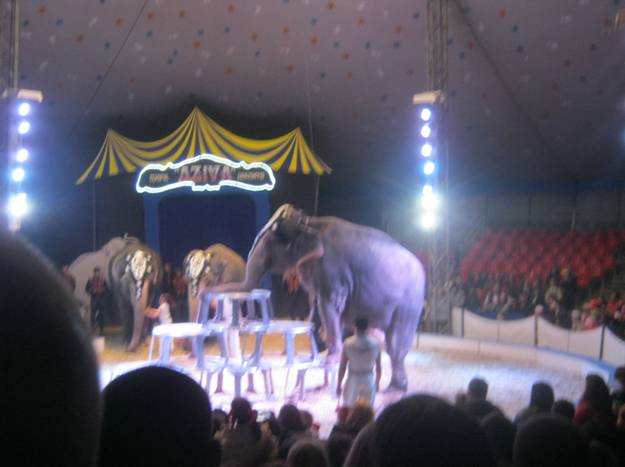 Кроме слонов (ах слоны) были еще дрессированные животные: верблюды, кони, один конь, пони. В принципе все они выполняли одно и то же, а дрессировщик их направлял двумя палочками.