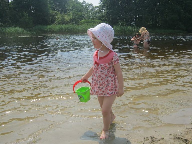 Жара, Поля в купальнике, людей и детей много, даже купаются.