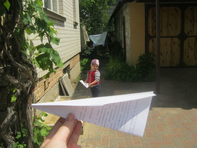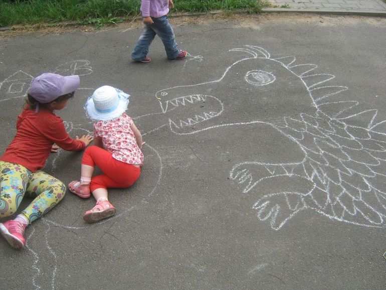 Только в 12 вышли на улицу, но я думала так полчасика погуляем, как набежали дети. Я нарисовала дракона. А еще мы делали самолетики. А потом дети просто бегали или в песке копались.