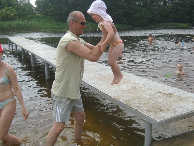 Полина ножки и ручки мыла, ведрами воду носила, с пристани дед помогал прыгать.