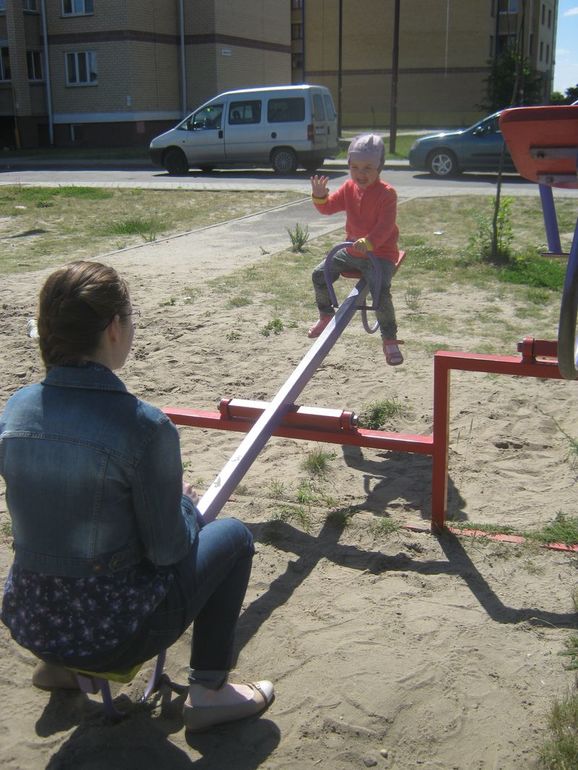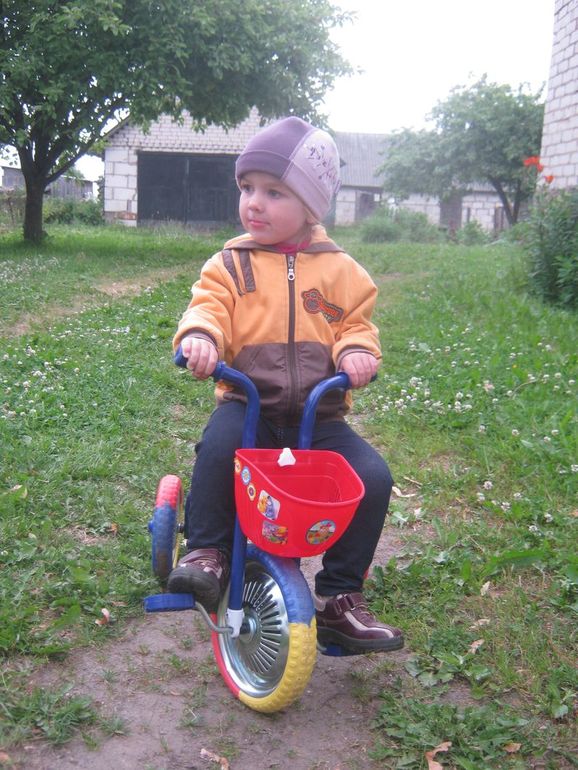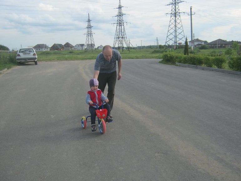 Вечером распогодилось, мы съездили в Евроопт, о чем я писала уже, и вернули деньги. Потом учили Полю кататься на велосипеде на дороге, которая идет под уклон. А потом еще покатались на велосипеде все вместе.