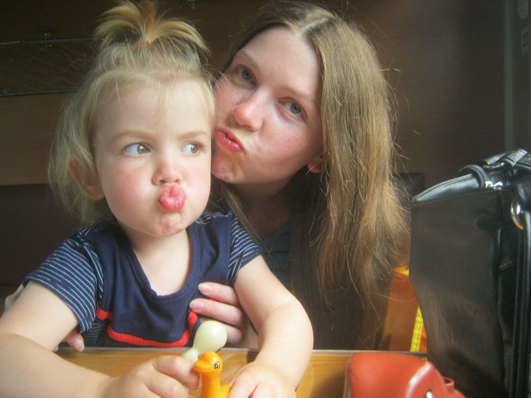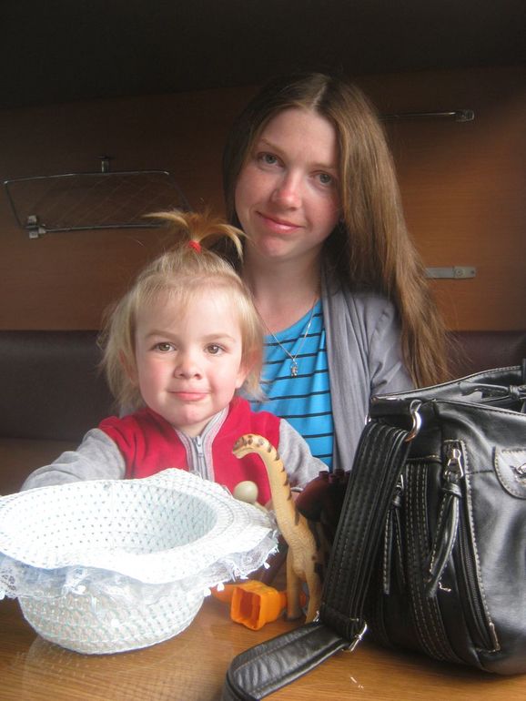 В поезде было хорошо, Полина играла с игрушками и с нами, даже не читали ничего, не рисовали, и не клеили наклейки.
