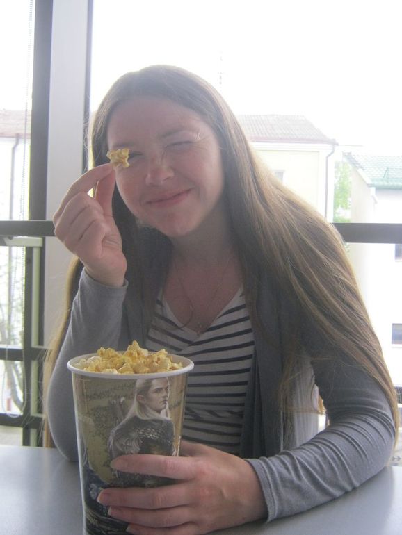 Поехали домой, покушали, я уложила Полю спать и мы опять поехали в город с Дашей. В кинотеатр на Мир Юрского периода. Купили даже попкорн и съели его еще до того, как показали первых динозавров))