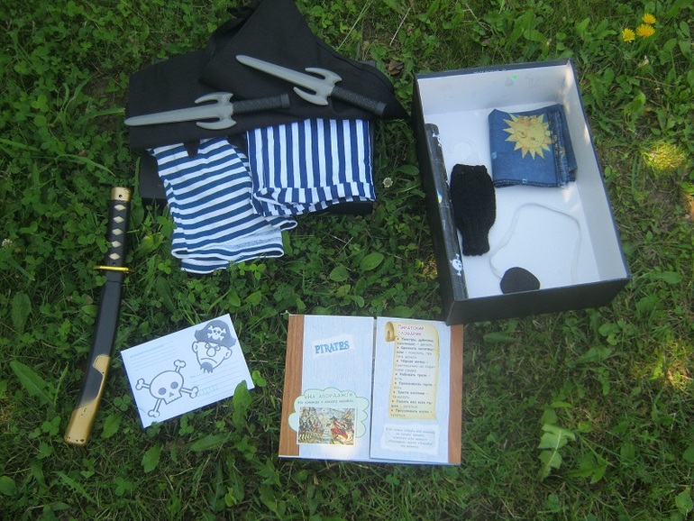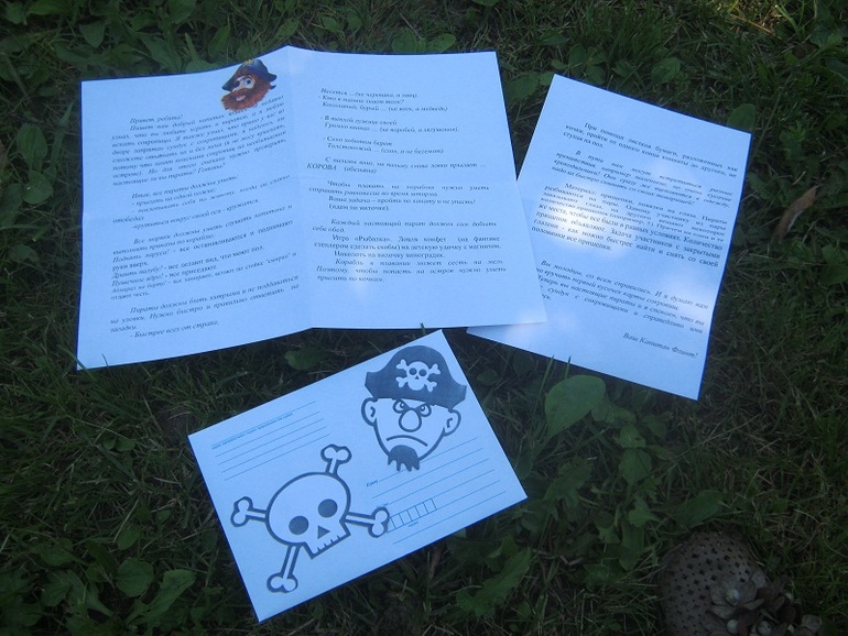 Конверт с письмом от Капитана Флинта. Там письмо от пирата, задания и некоторые конкурсы, и первая картинка от квеста-поиска сокровищ.