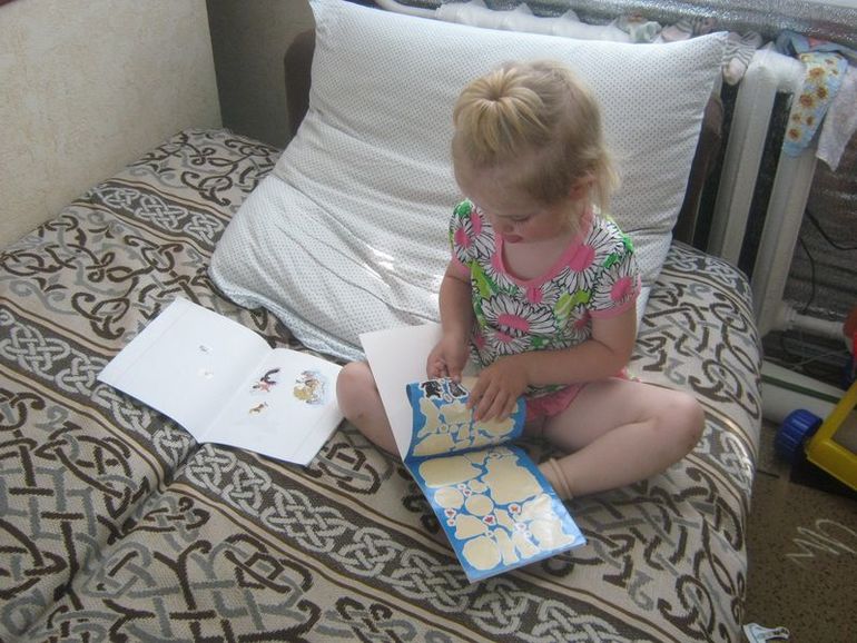 Любит: книжки читать. Остальное по-немногу. Особо любит такую форму, как сесть ко мне на колени за столом и что-то делать. Тут мы и полепим, и почитаем и порисуем. Любит всякие барахтанья и писки-визги.
