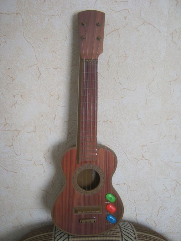 Бабушка Тома подарила мягкую Migotku и детскую гитару.