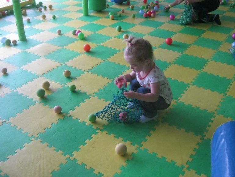 В этот раз она пробыла 1 час и 30 минут. Больше всего ей понравились пушки она добросовестно таскала наверх мягкие шарики сначала в руках, потом в сеточке. Заряжала пушку и стреляла.