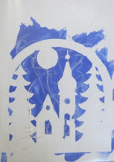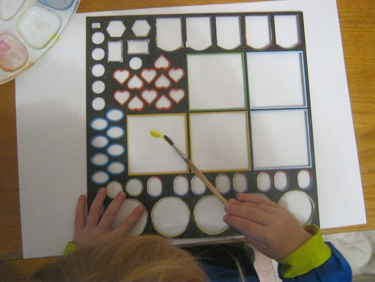 Закрепила скотчем и лист А3 и трафарет, чтоб не ездили. Выдала краски и вперед!