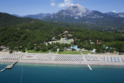 Этот превосходный отель расположен на самом берегу Средиземного моря, в сосновом лесу, в поселке Текирова. Представляет собой одно основное 5-ти этажное здание Main Building и комплекс 2-х и 3-х этажных бунгало. Красивая и большая территория, прекрасный вид на горы, хорошая анимация, разнообразный номерной фонд, большой пляж. Рекомендуем для активного отдыха как молодежи, так и семей с детьми. Есть русскоговорящий персонал.