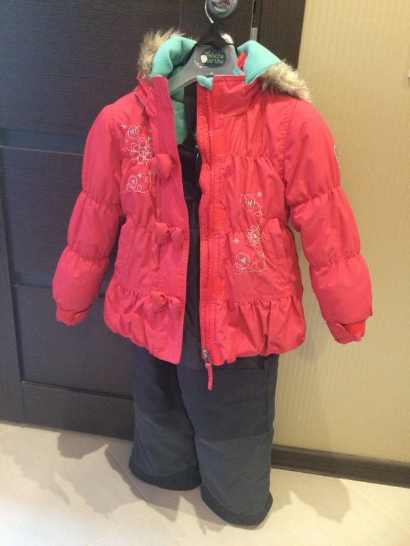 Ооочень теплый и красивый. Размер 3 на рост до 104 . Цвет куртки -коралл, штанов -серый.