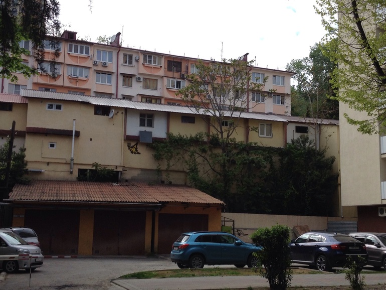 Тот же "таунхаус" фронтально (если присмотреться, то видно, что это гаражный комплекс, на котором достроили этаж... вблизи жуть)) на avito написано, что там сумасшедшая энергетика...верю, реально крыша едет