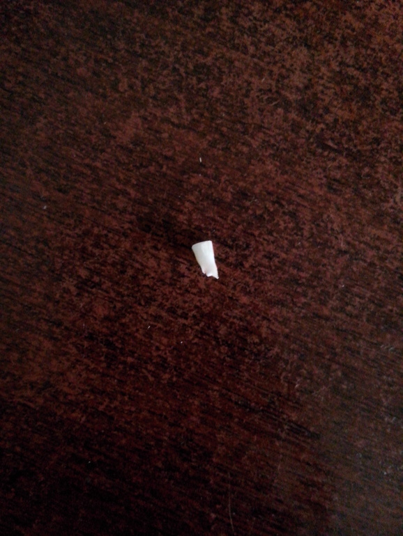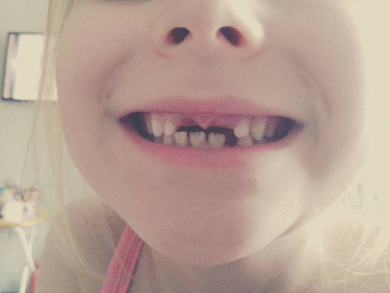 Вчера... (8.07.2015) вроде бы она знала, что скоро выпадет, расшатывала потихоньку... Сижу за компьютером, слышу паническое МАМА, поворачиваюсь, в глазах слезы, паника, страх, на губах кровь(вида крови она боится, до истерики доходит каждый раз, я сразу и не поняла, что произошло, пока зуб с кровью на пол не выпал...Еле ребенок успокоился, ватку зажать дала между зубками, минут через 5 кровь остановилась... Успокоилась, посмотрела на зуб, на дырочку, пострадала о потере) ))) Перед сном положила под подушку для зубной феи) )) Соседний зубик уже тоже шатается).