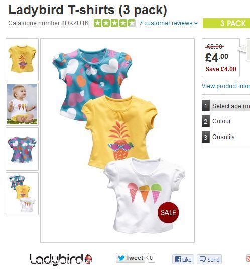 Комплект футболок, размеры от 3 мес до 2 лет, цена комплекта от 200-300 рублей.