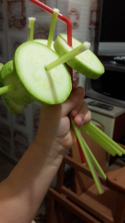 Итак, осмотрели, ощупали кабачок...посмотрели по картиночкам как он растет и начали его резать, чистить...