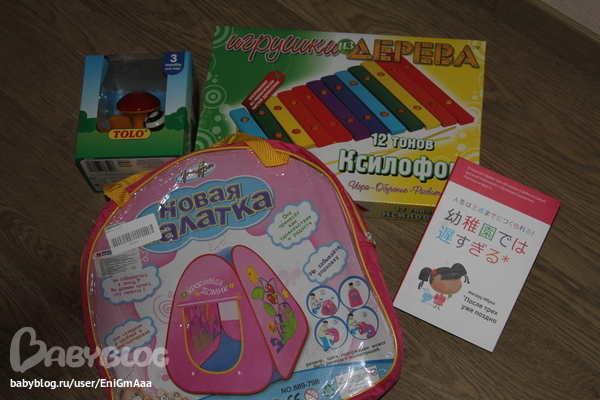 Моя тоже особо с игрухами уже не играет в привелегии больше мамины ручки и общение))) Книгу я такую будучи беременной еще прочитала))) Палатку нам подарили только нам ее ставить не куда((