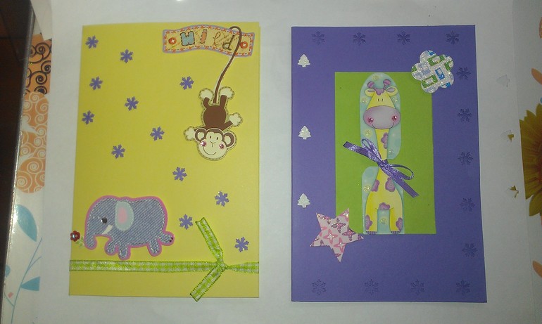 Вдохновившись этим мероприятием, Катя сама сделала дома открыточки, я немного помогала)) В канцтоварах купили готовые наборы и вот что вышло-