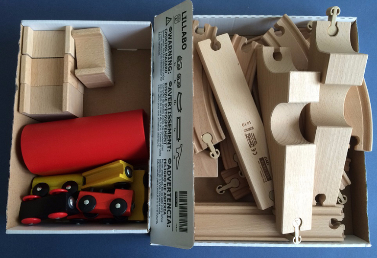 Один набор (в коробке) уже частично растерян. Второй, с подносом, удостоился бы такой же любви участи, если бы не один неприятный момент на возраст около года - большие липучки, ребенок просто не мог разрезать, не хватало сил. Растерянный набор же в этом плане выгладит намного лучше хотя если подумать, что по сути это косяки на производстве... - совсем небольшие липучки и из-за кривизны состыковки липучки лишь наполовину крепятся (тут выбор - или кривое-косое яблоко, но липучки целиком слеплены, или ровное, но липучки почти не держат).