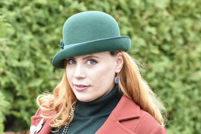 Еще одна шляпка 😊 Я ее показывала с черным зимним пальто, но вот осенний вариант!