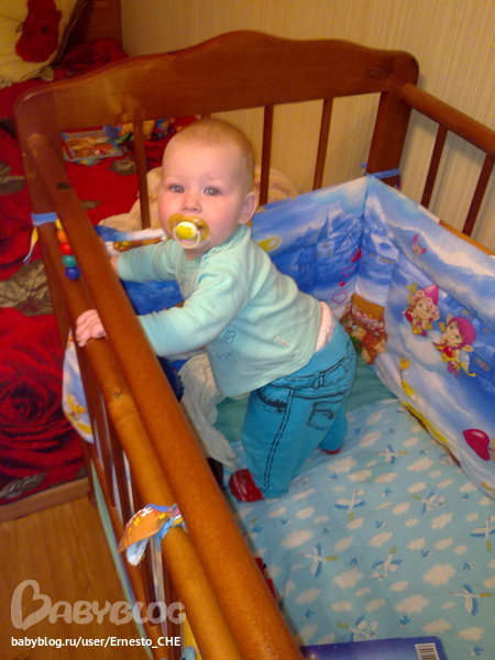 Как только Митя научился вставать - всё!!!! Ничего другое не интересно! Игрушки, ползать, сидеть. Нужно только вставать держась хоть даже за маленькую чебурашку))))) Ночью, если просыпается - сразу встает, чудо. Встает, стоит - качнулся, упал, ревет. Ох....