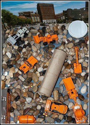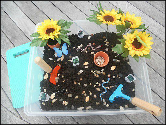 Это миниатюрная песочница, которая не ограничена только песком и формочками. В домашней песочнице может находится любой наполнитель: пшеница, гречка, овсяные хлопья, пшено, манка, рис (обычный и окрашенный пищевыми красителями), горох, фасоль, чечевица, соль (крупная и мелкая), макароны (ракушки, спиральки, трубочки, цветочки, бантики, алфавит, звездочки и другие), семечки, мука или кукурузный крахмал, кукурузные хлопья, орехи, тесто (соленое и обычное), снег, лед, шишки, желуди, нитки (длинные и порезанные на мелкие кусочки), бумажные салфетки (порванные на кусочки, целые или скомканные в маленькие шарики), песок (сухой и мокрый), лоскуты ткани, варенные спагетти, трава, листья и другие природные материалы, галька и всякие мелкие камушки, грунт, аквагрунт, кусочки поролона, ватные шарики, нарезанная бумага, солома, мыльный раствор, вода, пена для бритья, пуговицы, деревянная стружка.
