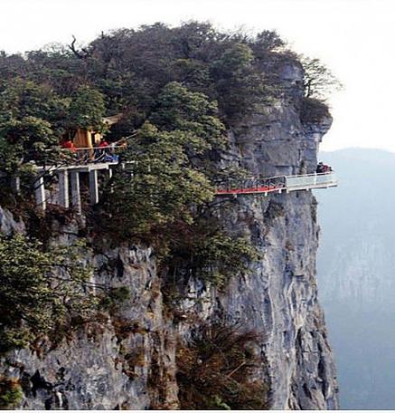 Новое развлечение в Китае - прозрачный балкон, построенный вокруг горной вершины на высоте 1430 м. Отличный вид - если конечно рискнешь смотреть вниз.