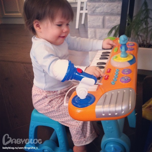 Из развлечений фаворит музыкальный синтезатор - на нем и бремчать приятно, да и в микрофон Софийка с восторгом поет тра-та и особенно нравиться посмеятся в него!)