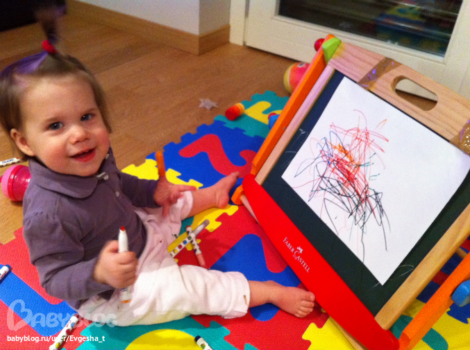На сегодняшний день главным Сониным интересом является рисование! Она рисует карандашами, мелками, пальчиковыми красками, кистью и красками, маркерами. Весь этот процесс ее очень увлекает. В последнее время ей ну очень нравится открывать маркеры ртом.
