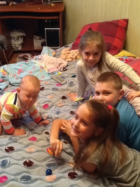 Что сказать я охренела!!!! У нас сегодня так все хорошо начиналось ! Ксю пригласила подружка с танцев на день рождения... А потом преподавательница их забрать в кино ... А все это к чема , а к тому что что сплавив ее в 11 утра мне обещали ее вернуть в 17.00 и не соврали вернули!!!! Но не одну!!! Позвонила одна подружка... Я говорит поехала дачу драить пусть сынок у тя до вечера побудет... Не вопрос! Пусть! Трубку не успела положить звонит вторая! Мы с мужем в кино пошли пусть дочка у вас потусит часа полтора , а то забрать не успеваем!!! Пусть!!! Мы все время так друг другу помагаем это у нас норма !!! Иьзабираем оптом и домой развозим! Просто нет смысла картежем кататься у нас же танцы каждый деньь! Ну а третья подружка которая должна была первезти эту компашку просто и честно заявила что ее дочки узнав что все идут к нам просто попросились за компанию! Ну как отказать и вот они моимногодетненькие ! Ну а вечером когда большую часть разобрали пришла еще одна подружка со своей дочкой! Вот такой вот тихий деек который кончился в 12! А завтра соревнования.... Вновь в бой