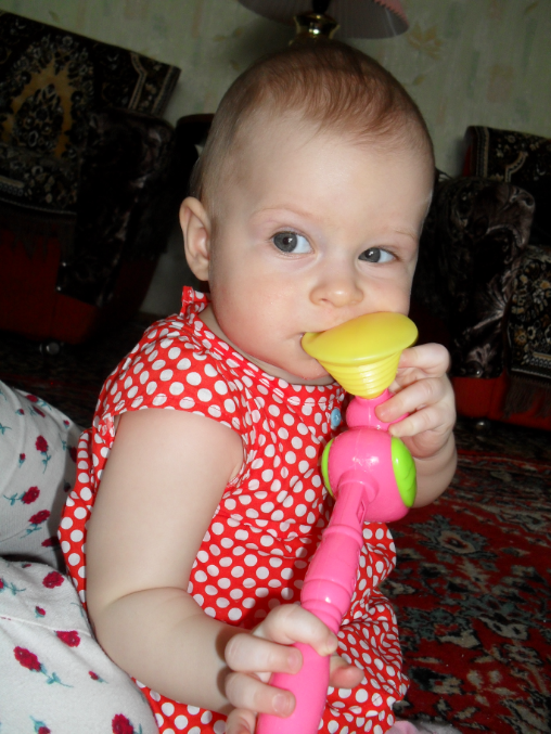 Самое забавное - теперь ВСЕ знают, чего Вероника хочет! Тянет руку ладошкой вниз и сжимает/разжимает кулачок)) Типа "Дай-дай", тока озвучивать пока не получается.